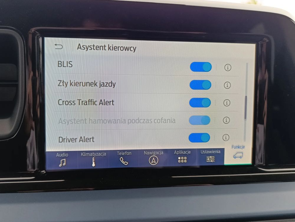 • Nawigacja satelitarna Ford SYNC 4 – dotykowy ekran 8”, radio cyfrowe FM/DAB, bezprzewodowa obsługa Android Auto/Apple CarPlay, Bluetooth ze sterowaniem głosowym, USB, 6 głiśników